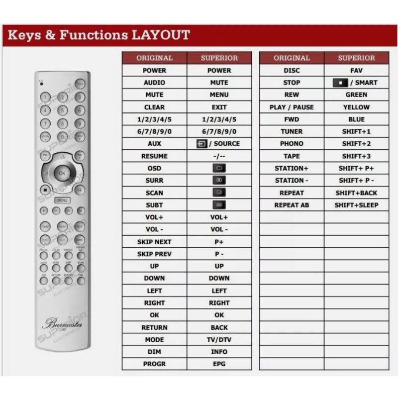 Ist die originale Steuerung für Ihr Burmester 051 Hi-Fi-Gerät defekt oder verloren gegangen? Dieses Modell wurde als idealer Ersatz entwickelt und ist vollständig mit dem Burmester 051 kompatibel. Darüber hinaus ist dieses Modell möglicherweise auch mit weiteren, hier nicht explizit aufgeführten Burmester-Geräten kompatibel. Bitte beachten Sie: Sie erhalten eine von uns speziell für Ihr Gerät programmierte, hochwertige Fernbedienung der Marke Superior, nicht das Original des Herstellers.