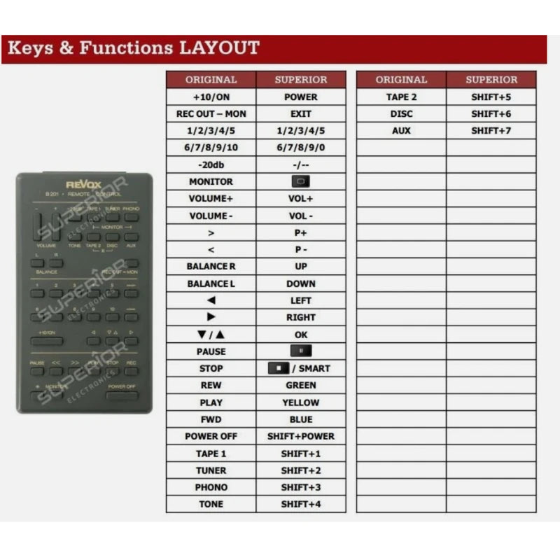 Ersatz Fernbedienung B201 für Revox B215, B225, B250 & weitere Hi-Fi-Komponenten