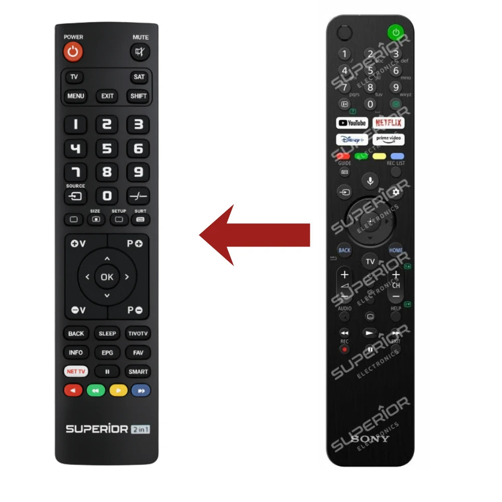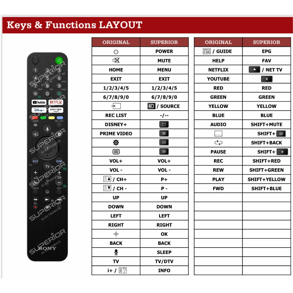 Wichtiger Hinweis zur Sprachsteuerung: Die Originalsteuerung RMF-TX520E unterstützt RF (Bluetooth) für die Sprachsteuerung (Google Assistant). Unsere Ersatzsteuerung funktioniert primär über Infrarot und deckt die gesamte IR-Befehlspalette (alle grundlegenden Funktionen) ab. Für die Nutzung der Sprachsteuerung muss die Kompatibilität des Fernsehers mit Infrarot-Sprachbefehlen geprüft werden; in den meisten Fällen wird für Voice Control das Original benötigt. Die Navigation und die Direktzugriffstasten funktionieren jedoch sofort.