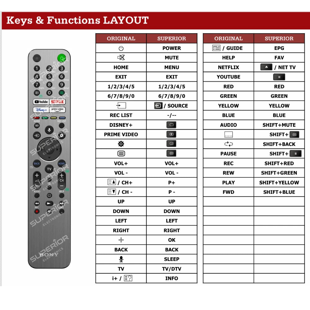 Wichtiger Hinweis zur Tastenbeleuchtung: Die Originalsteuerung RMF-TX621E ist bekannt für ihre Tastenbeleuchtung und die RF (Bluetooth) Sprachfunktion. Unsere Ersatzsteuerung funktioniert primär über Infrarot und deckt die gesamte IR-Befehlspalette ab. Die Backlight-Funktion und die Sprachsteuerung werden von diesem IR-Ersatz in der Regel nicht unterstützt, die grundlegenden TV-Funktionen jedoch sofort und zuverlässig.