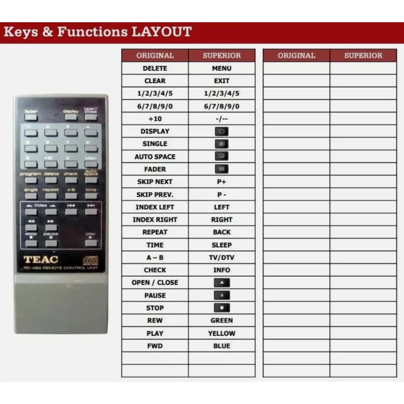 Ersatz Fernbedienung RC-495 für TEAC PD-495 & PD-496 CD-Player