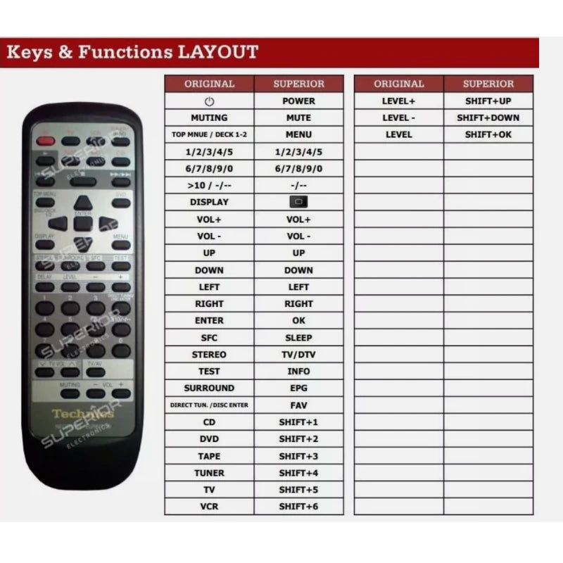 Ist die originale Steuerung (Modell EUR647139) für Ihren Technics AV-Receiver defekt oder verloren gegangen? Dieses Modell wurde als idealer Ersatz entwickelt und ist vollständig kompatibel mit den Modellen: Technics SA-DX940 und SA-DX960. Darüber hinaus ist dieses Modell möglicherweise auch mit weiteren, hier nicht explizit aufgeführten Technics-Geräten kompatibel. Bitte beachten Sie: Sie erhalten eine von uns speziell für Ihr Gerät programmierte, hochwertige Fernbedienung der Marke Superior, nicht das Original des Herstellers.