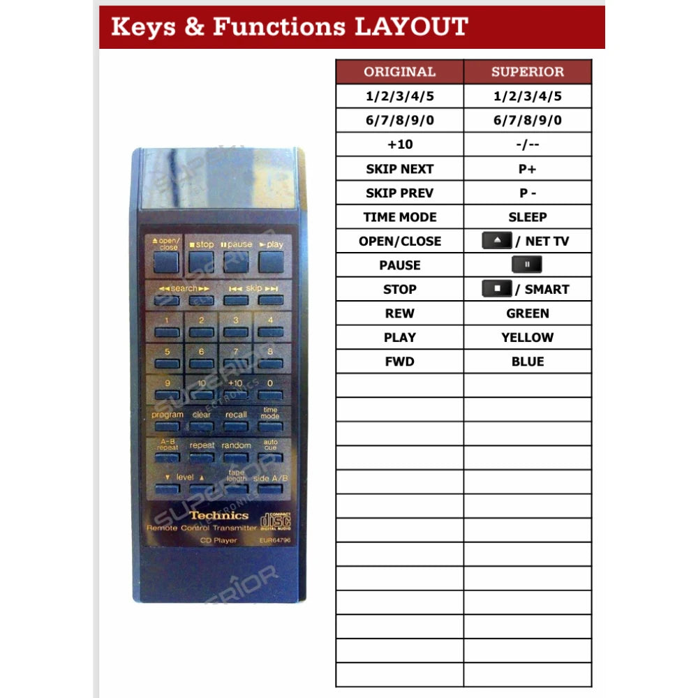 Ersatz Fernbedienung EUR646496 für Technics SL-P277 & SL-P277A CD-Player